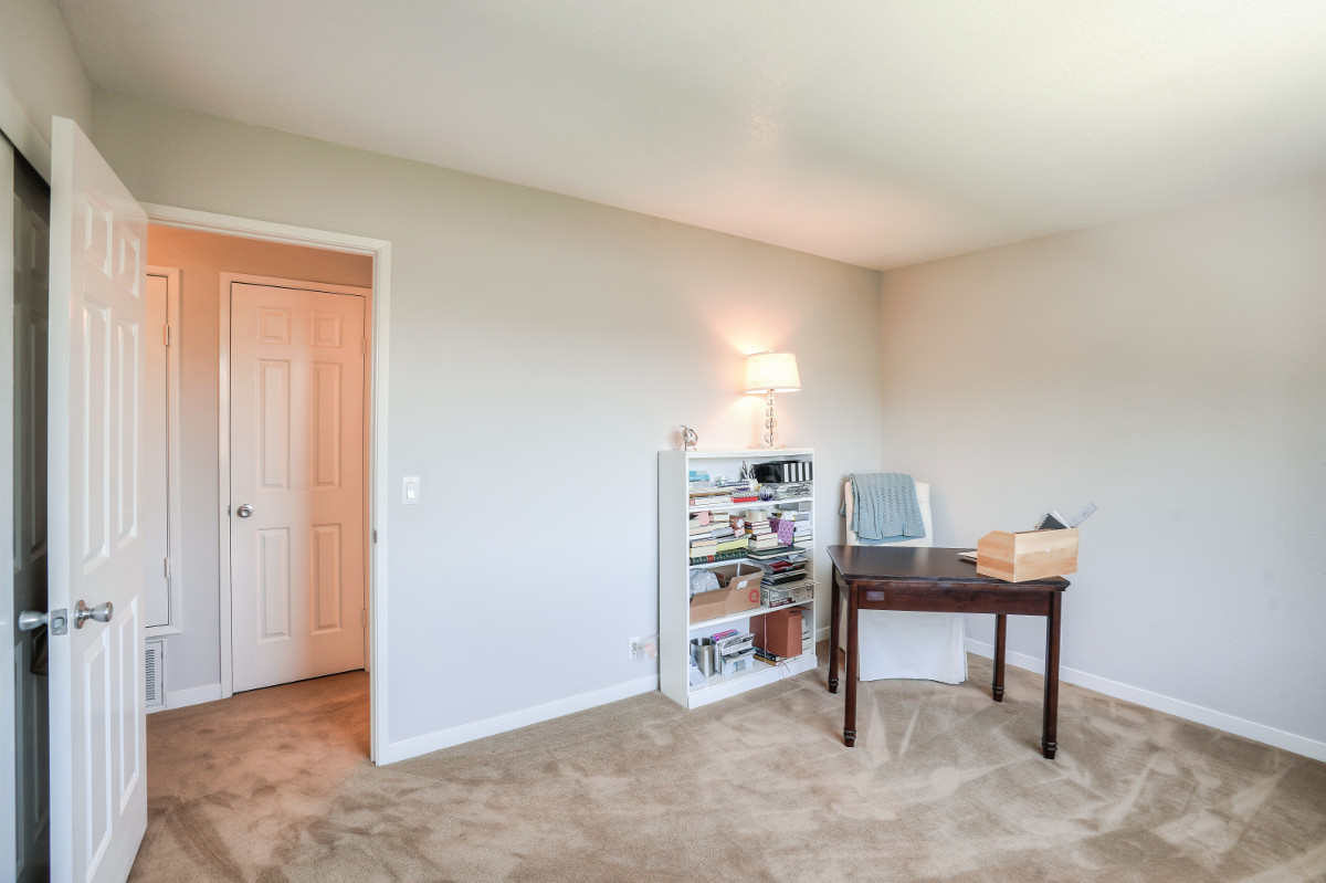 - Three additional bedrooms on this level; each has carpet, a closet plus a window for natural light and share the full guest bath.